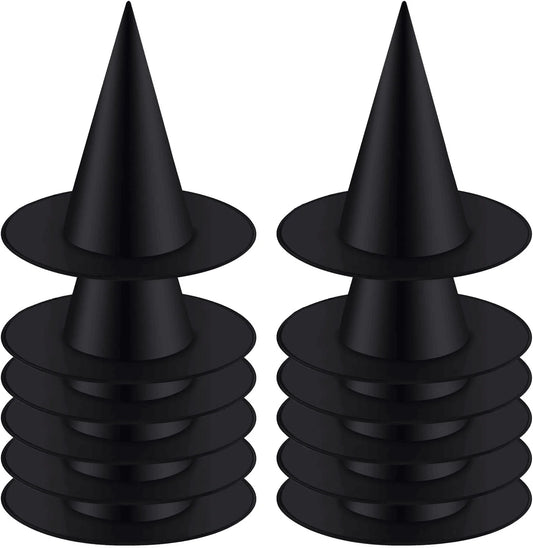 12Pcs Halloween Witch Hat Cap Hanging Witch Hat Costume Accessory for Halloween Party Favor, Black